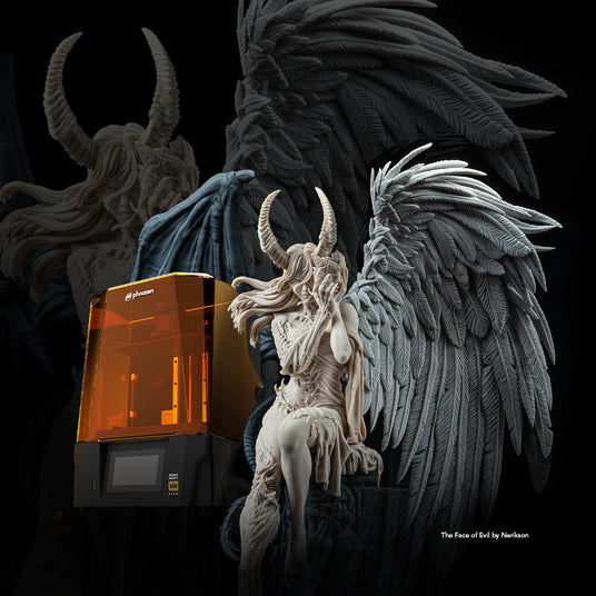 Designed by @nerikson91, The Face of Evil was printed on the Phrozen Sonic Mighty Revo 16K using Aqua Hyperfine Graphite, Aqua-Vanilla 8K, and Aqua Snowgray 8K. Through its wing structure and layered detailing, the model creates a striking contrast between light and dark while preserving fine textures and intricate details with exceptional clarity.