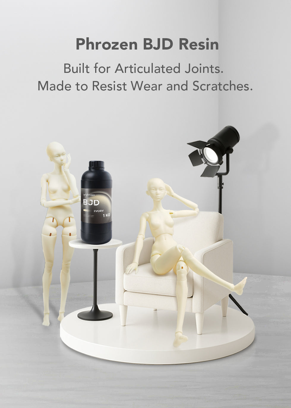 Yes. Phrozen BJD Resin is designed specifically for articulated ball-jointed dolls. Its wear and scratch-resistant formula helps joints rotate and move repeatedly without powdering, improving long-term durability and reducing common joint wear seen with standard resins. It is formulated specifically for BJD use.