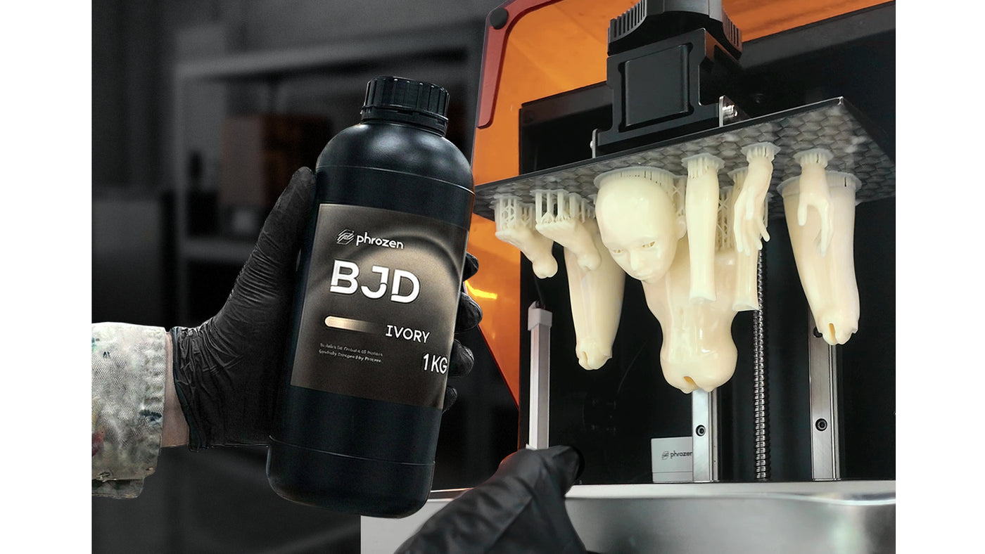 Phrozen BJD Resin is a highly wear-resistant UV-curing resin designed for ball-jointed dolls (BJDs) and articulated figures, including action figures. Its wear and scratch-resistant formula helps joints rotate repeatedly without creating chalky dust, reducing the common “powdering” issue seen with standard resins. Once cured, it delivers a naturally matte finish with a refined surface and clean support contact points, making post-processing faster and easier. Compatible with many water-based paints, it applies evenly with reliable adhesion. Ideal for BJD creators, articulated figure makers, studios, figurine artists, creators of functional accessories with moving joints, and stop-motion puppet creators. Compatible with mainstream 405 nm MSLA/LCD printers. Best paired with the Phrozen Sonic Mighty Revo 16K for optimal detail.